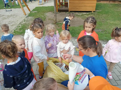 Süle Lilla környezetmérnök kolléganőnk szelektív hulladékgyűjtésre szolgáló sárga zsákjából újrahasznosítható anyagok kerültek elő, melyet a gyerekek lelkesen válogattak szét anyagfajták szerint és beszélték meg a szelektív hulladékgyűjtés és az újrahasznosítás fontosságát.
