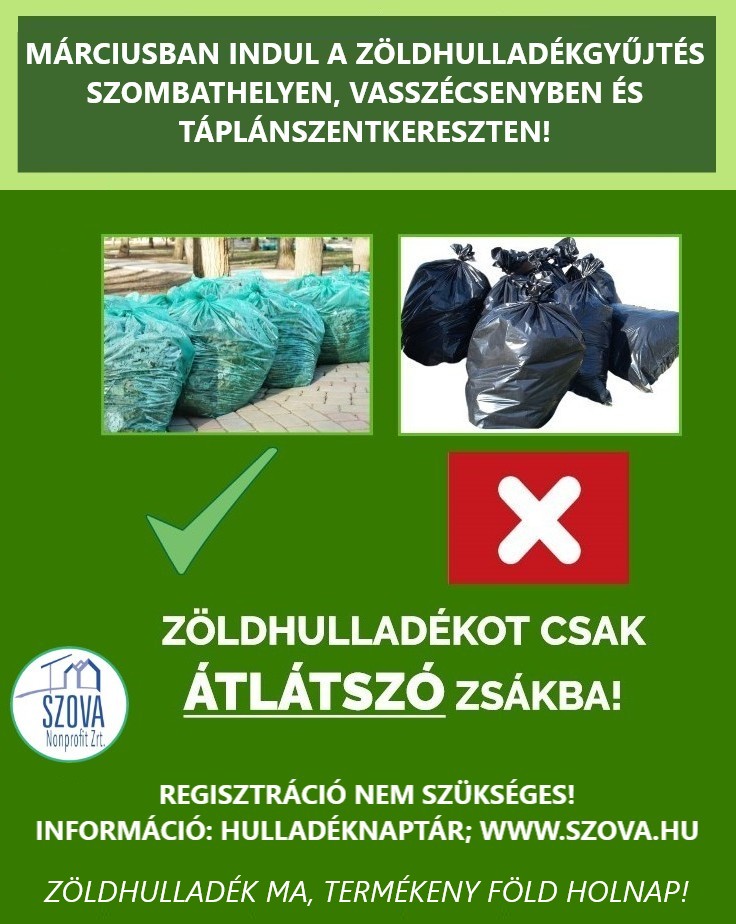 2026. március 1-től újra indul a zöldhulladék rendszeres járattal történő gyűjtése Szombathelyen, Táplánszentkereszten és Vasszécsenyben.