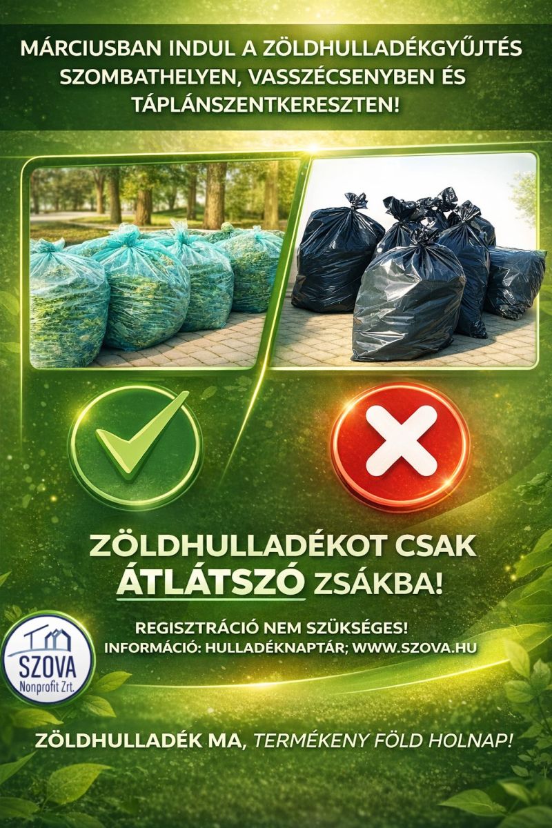 2026. március 1-től újra indul a zöldhulladék rendszeres járattal történő gyűjtése Szombathelyen, Táplánszentkereszten és Vasszécsenyben.