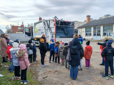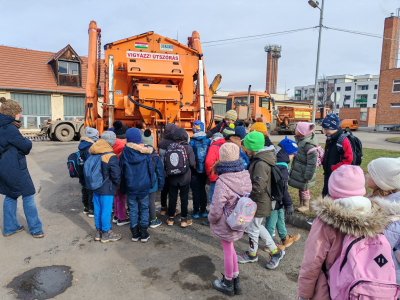 A gyerekek nagy érdeklődéssel járták körbe a hulladékgyűjtő gépjárművet