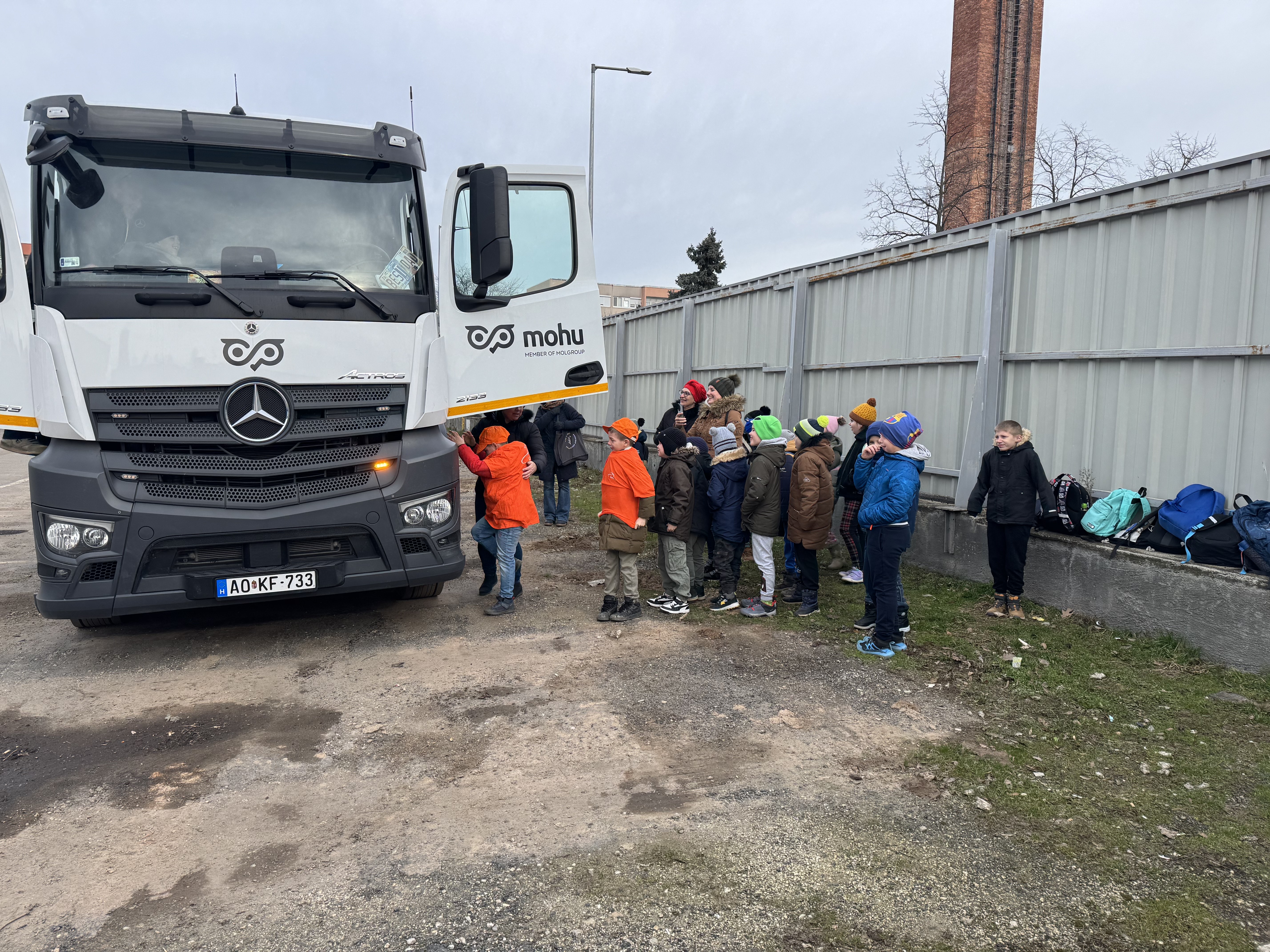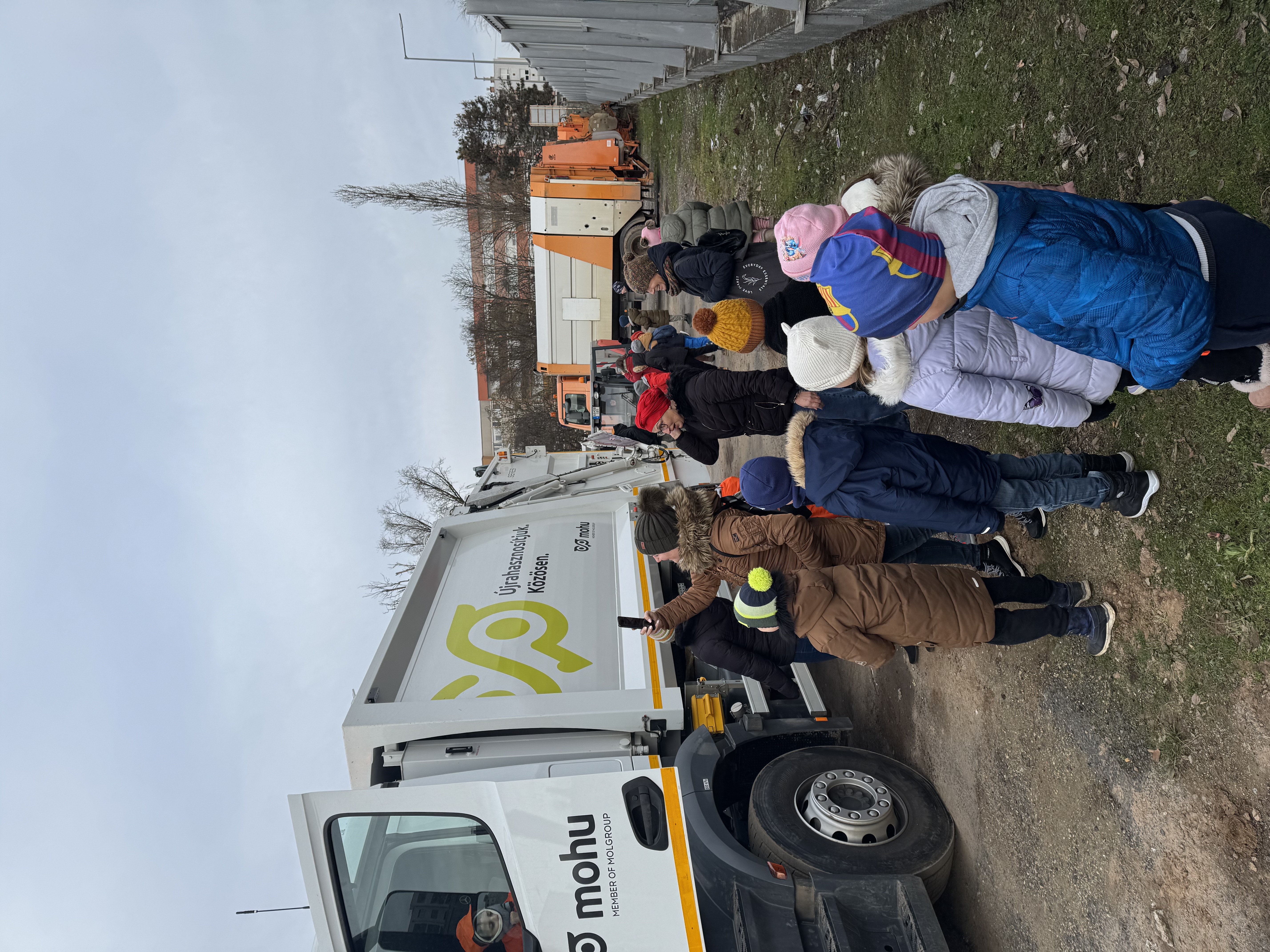 A gyerekek nagy érdeklődéssel járták körbe a hulladékgyűjtő gépjárművet