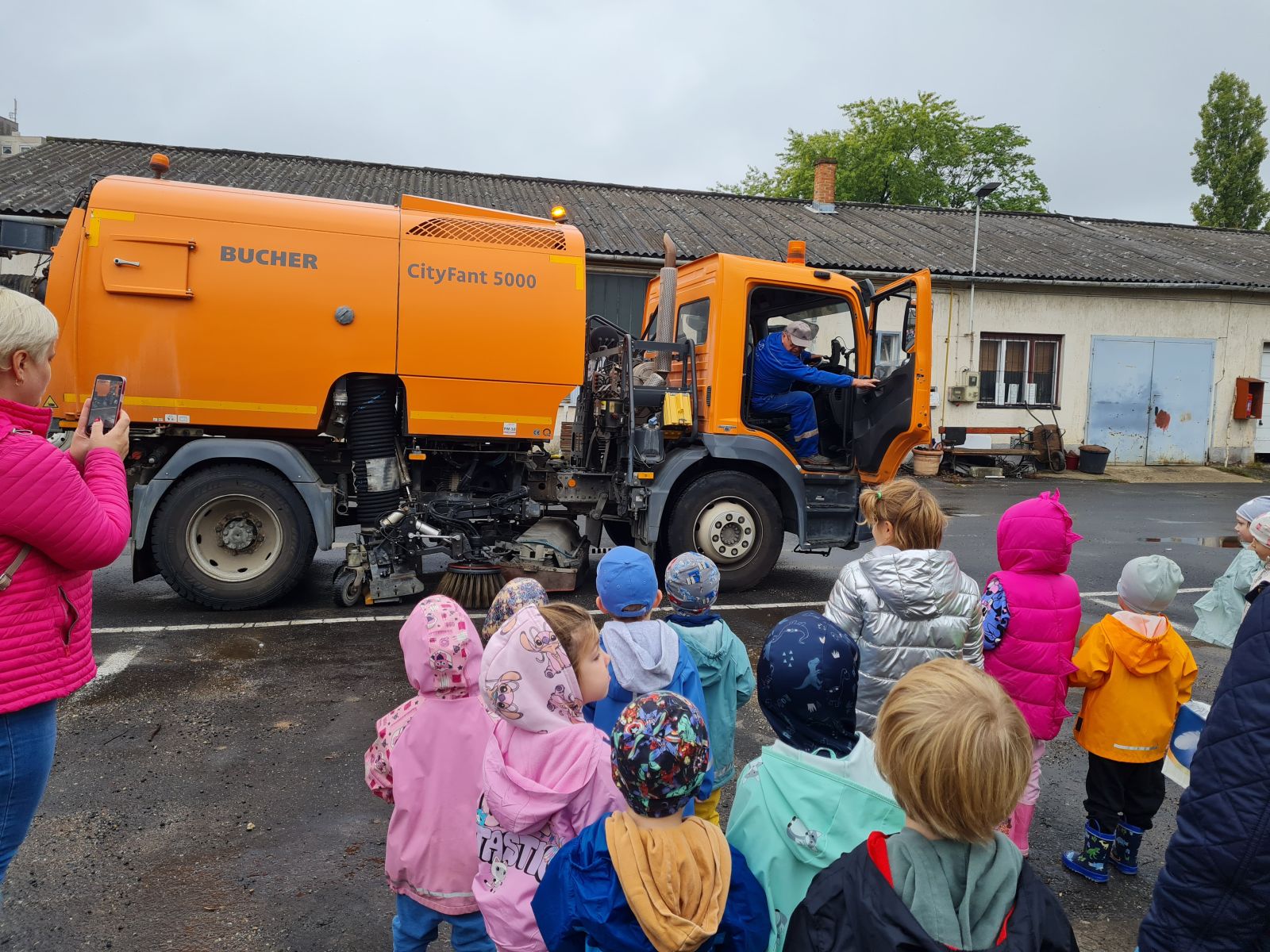 Az apróságok érdeklődéssel járták körbe a hulladékgyűjtő gépjárművet és narancssárga „kukás” pólóba bújva a vezetőfülkébe is beülhettek.