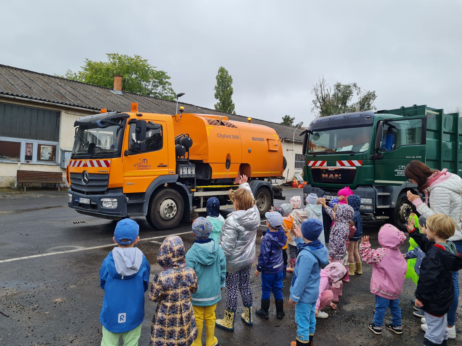 Seprőautónk rövid bemutatót tartott nekik az udvaron, melyet lelkesedéssel néztek meg a gyerekek.